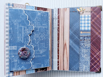 Między czasie poczyniłam miniaturowy męski (choć niekoniecznie) albumik, taki do kieszeni 😉 na bazie papierów z kolekcji Gentelmen od Lemoncraft. . Okładkę stworzyłam własnoręcznie oklejając ją kawałkiem teksasowych, w które już się nie mieściłam 😁 Podoba mi się taka miniaturowa forma albumów 😊